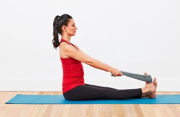 Gently pull your toes toward you while keeping your knee straight.